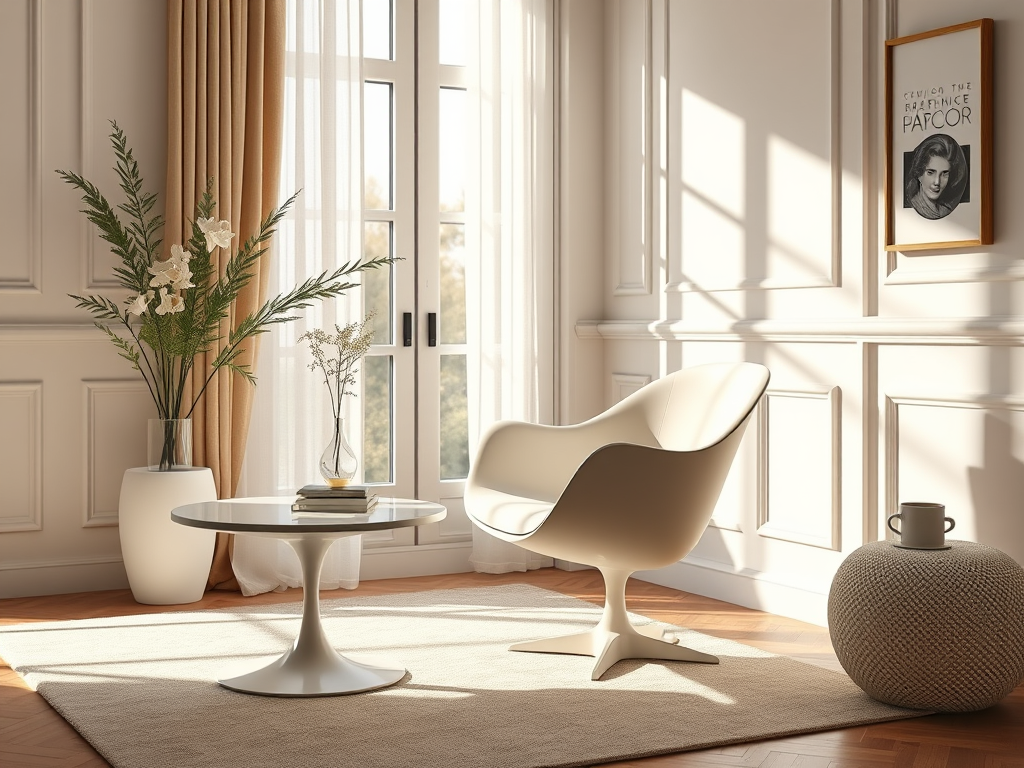 Eero Saarinen développe, dans les années 1950, la chaise Tulipe sur un pied. L’entreprise Knoll International, produisant cette chaise saarinen, inscrit cet objet, alors unique en son genre, au rang de classique du design. La chaise Knoll, en combinaison avec les tables Tulipe Knoll, procure élégance, harmonie et féminité dans un intérieur. Effectivement, les lignes et formes fines, longues et organiques cherchent à libérer des standards conventionnels apportant plus d’espace et de mouvement pour les jambes des utilisateurs.