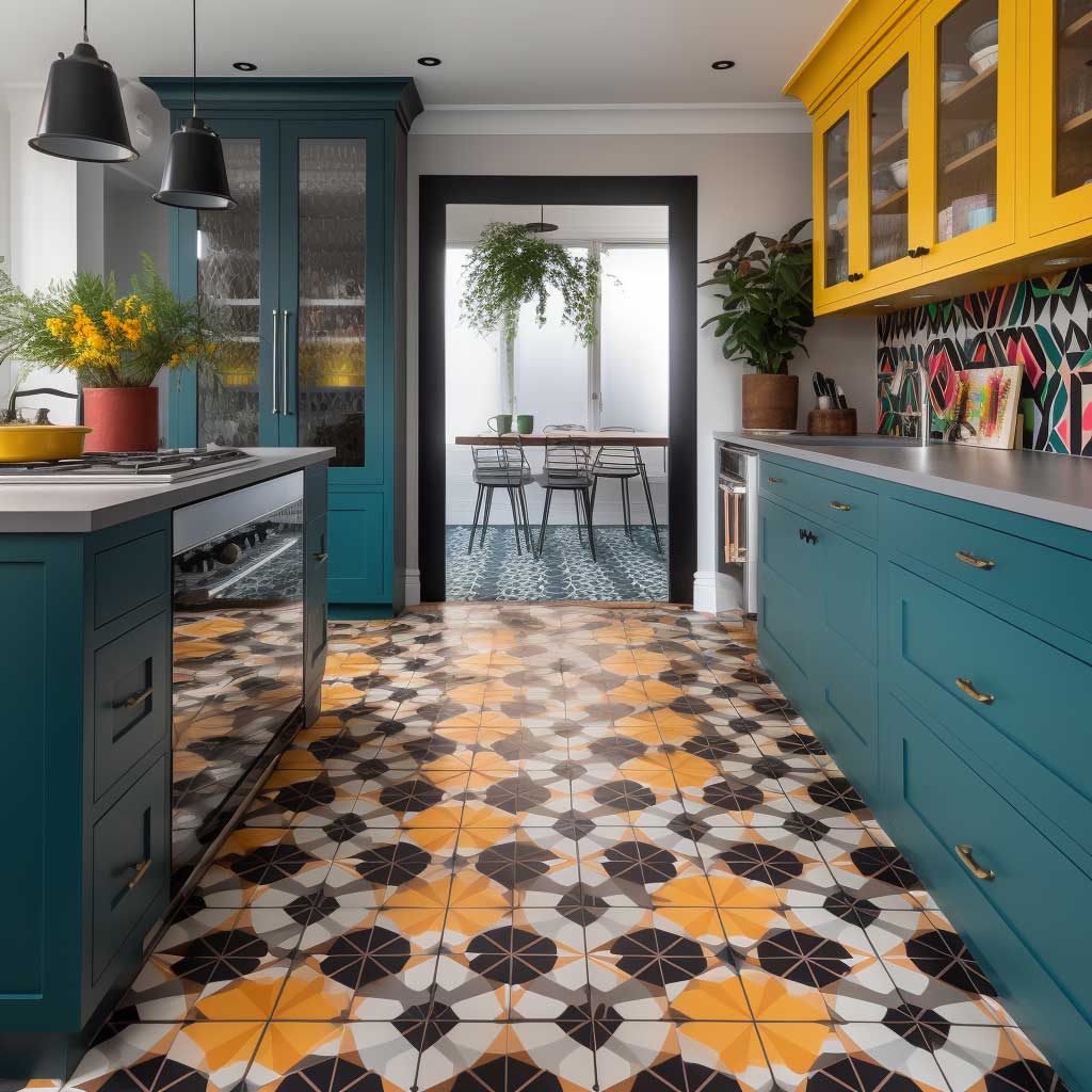 Les motifs audacieux du vinyle apportent non seulement une touche esthétique, mais aussi une fonctionnalité appréciable. Ce matériau résistant est facile à nettoyer et à entretenir, ce qui en fait un choix à la fois élégant et pratique pour le sol d’une cuisine.