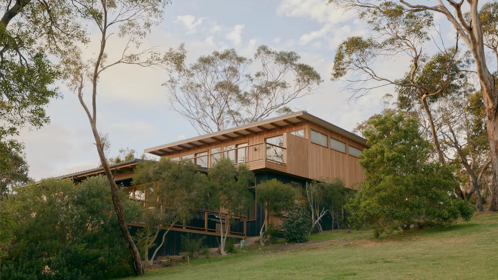 Cette maison côtière à Lorne, Victoria, en Australie bénéficie de quelque chose dont la plupart des gens rêvent : des vues imprenables sur l’océan, enveloppées de verdure.